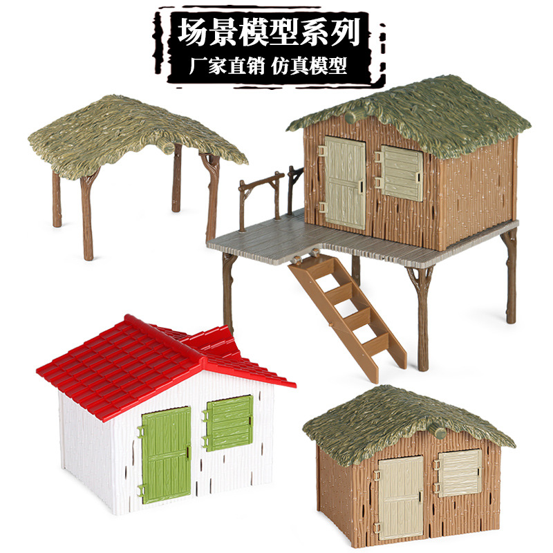 Mainan Ornamen Tempat Meja Pasir Pemandangan Desktop Rumah Plastik Bisa Dibongkar Rumah Jerami Hewan Hewan Simulasi Anak-Anak