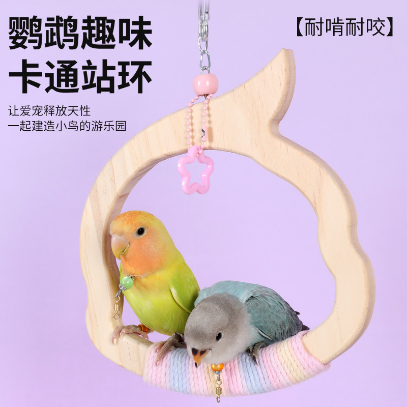 Mainan Ayunan Burung Kakatua Model Gantung Tali Katun Warna Lucu Kulit Harimau Peony Gigitan Gigi Hiasan Kandang Burung Kayu Solid