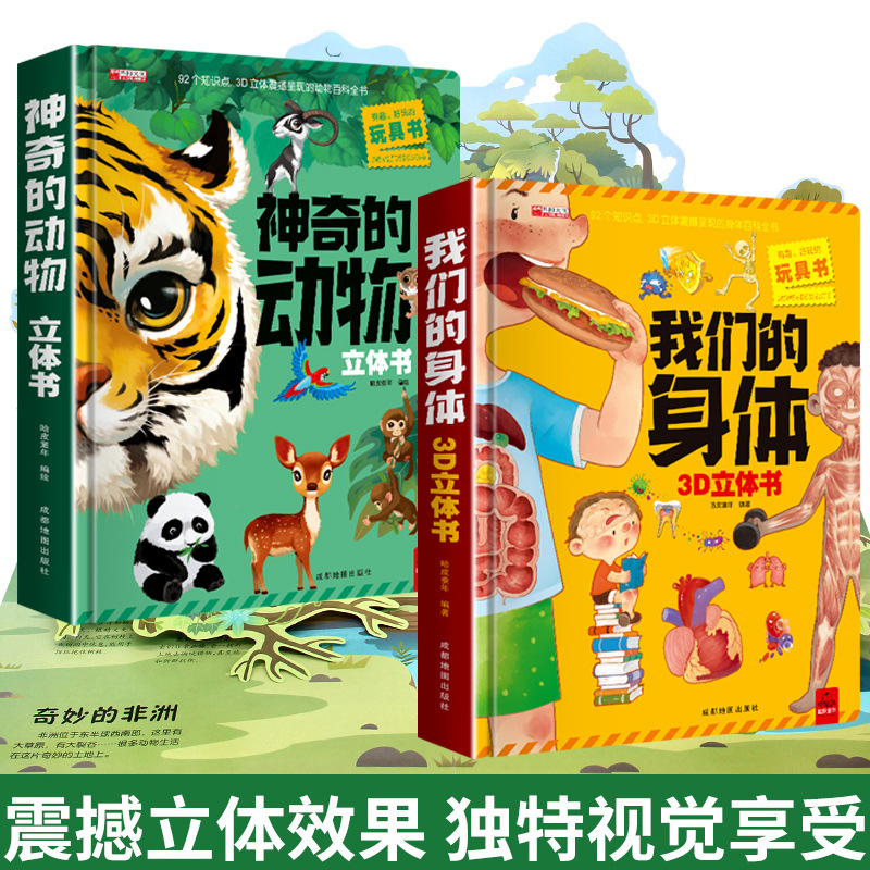 Tubuh kami 3D buku stereoskopik hewan ajaib 3D buku stereoskopik cangkang keras cangkang keras buku terbuka besar ensiklopedia anak-anak buku mainan