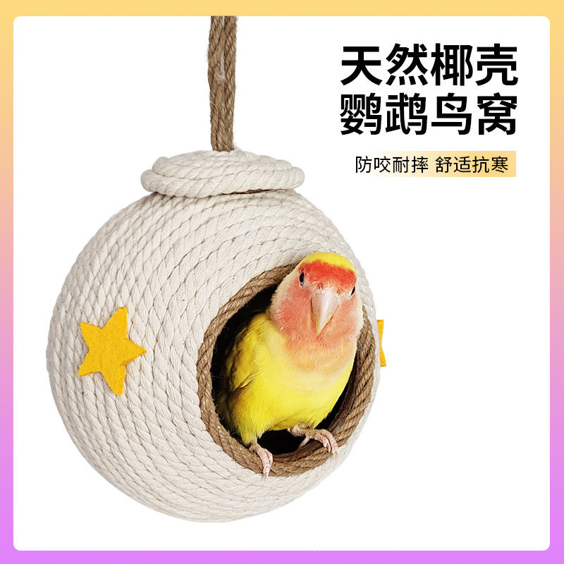 Sarang Burung sarang burung beo hamster tupai berkembang sarang tali rami tenun sarang burung beo cangkang kelapa sarang tangan tenun sarang burung grosir