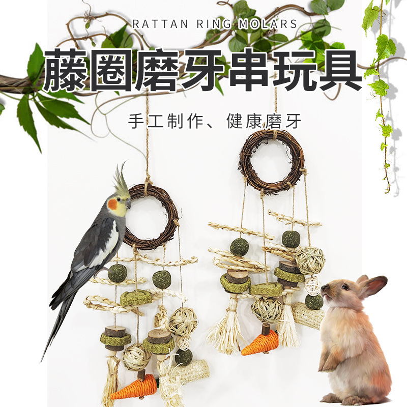 Mainan kunyah kelinci mainan burung beo mainan hamster penghilang kebosanan mainan hewan peliharaan kecil mainan burung mainan kunyah rotan kayu