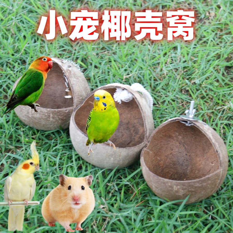 Sarang kelapa peliharaan kecil sarang kelapa sarang hamster Totoro kulit harimau peony perlengkapan mainan burung nuri ukuran kecil dan sedang sarang burung dalam persediaan