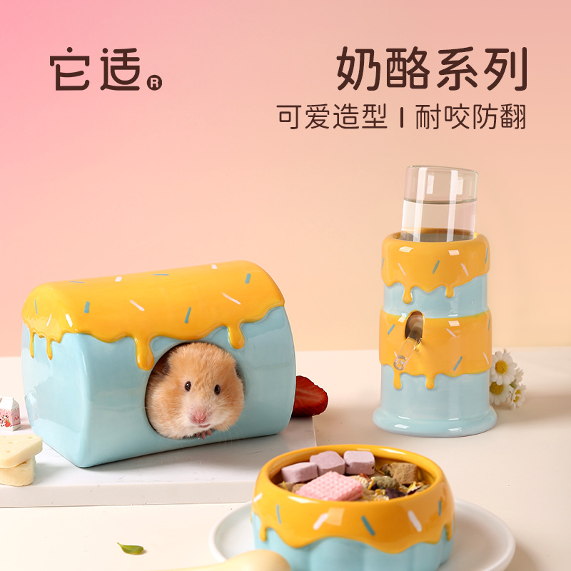 Sangat cocok untuk hamster untuk menghindari sarang keramik pendingin rumah botol air minum botol air minum botol air minum botol makanan vertikal hamster pelangi vegetarian
