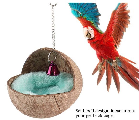 Sarang cangkang kelapa hewan peliharaan, sarang burung tupai Tianzhu Belanda, sarang tidur hangat cangkang kelapa, sarang burung beo, sarang bulat