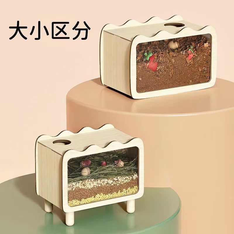Dalam stok kotak hamster kayu keluaran baru kotak makan pemeliharaan ayam rutin kotak makanan peliharaan transparan kayu