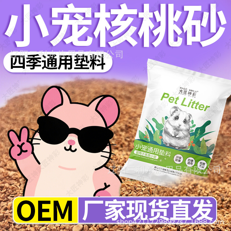 【Subsidi Produsen】Pasir walnut untuk hamster, pasir pendingin butiran besar, pasir urin rendah debu, serutan kayu.