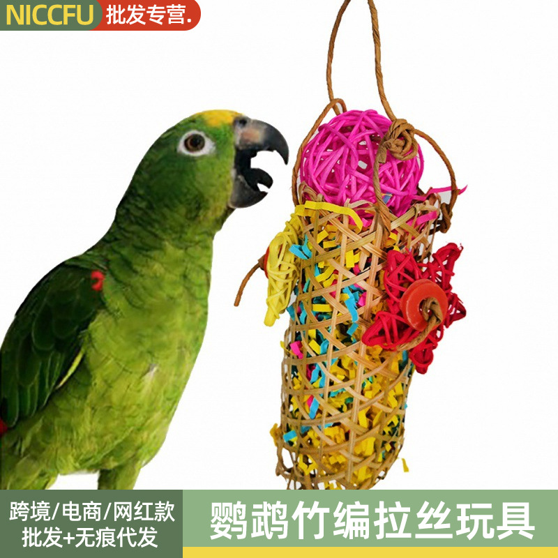 NC mainan burung beo tali gambar kawat keranjang bambu gambar kawat kertas burung bayan gambar gigitan mainan sangkar burung mainan Hi