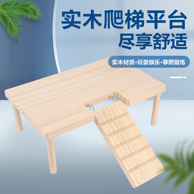 Persediaan lansekap platform dua lapis untuk Hamster kayu solid rutin ayam landak beruang emas meja hewan peliharaan kecil dengan tangga