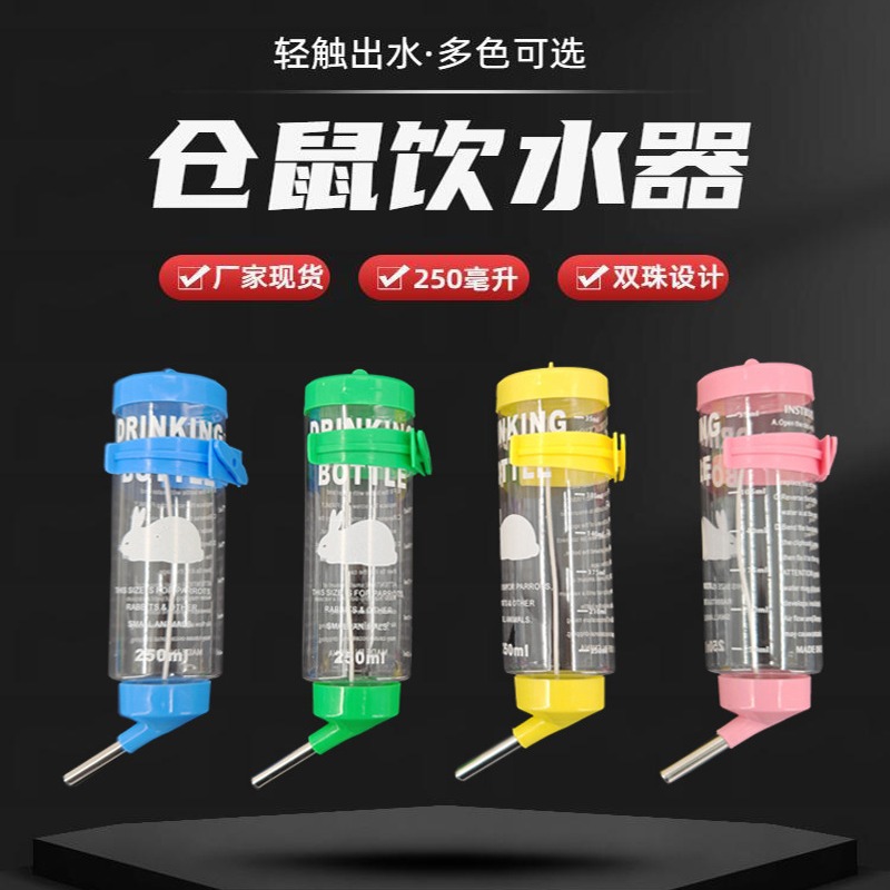 Tempat minum botol air hamster, dispenser air otomatis untuk hewan peliharaan kecil, dispenser air tipe bola vertikal, mangkuk makanan, perlengkapan hamster dua-dalam-satu.