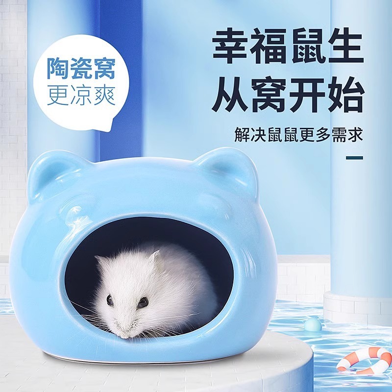 Kandang keramik anti-flip Hamster, rumah es pendingin musim panas, tempat berlindung kecil keren, perlengkapan lansekap hewan peliharaan