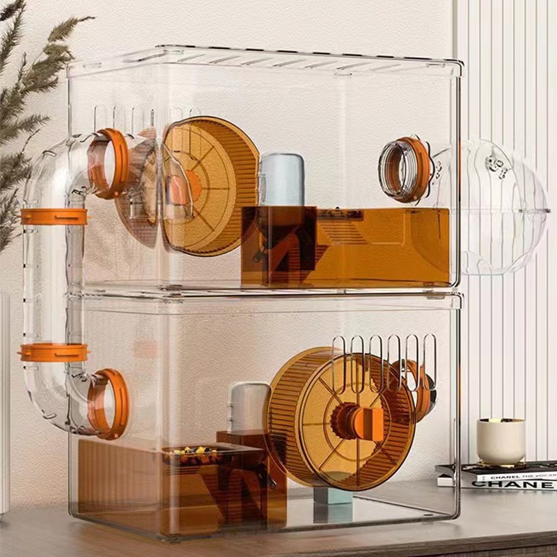 Sangkar Hamster Villa Mewah Akli Transparan Beruang Sutra Emas Holland Babi Dua Lapisan Kombinasi Hamster