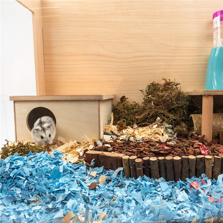 Hamster kayu 2 kamar kayu lapis hamster gerbil hewan peliharaan sarang dengan papan partisi