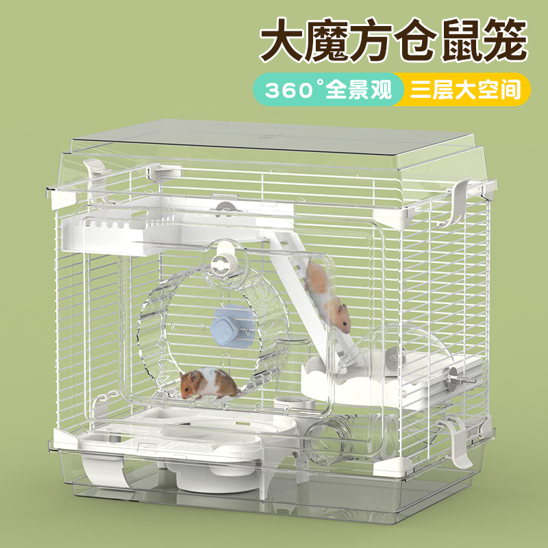 Persediaan produsen kandang hamster tebal portabel kandang hamster transparan akrilik kandang hamster perlengkapan hamster kandang pandangan vila kecil