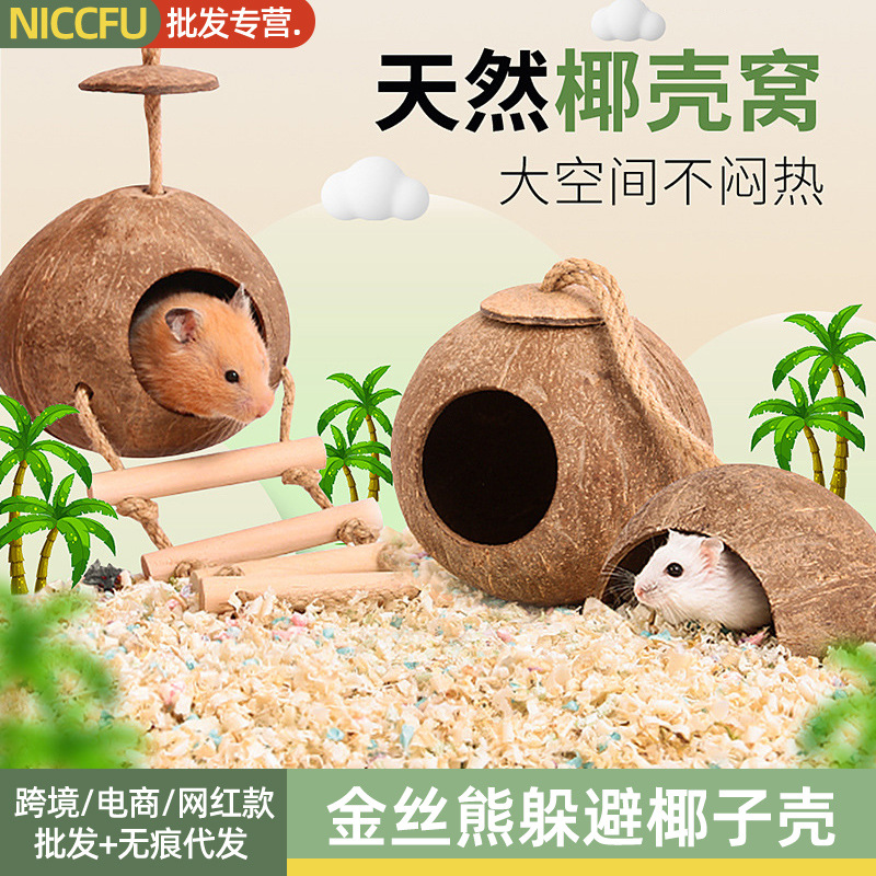 NC rumah tersembunyi Beruang Emas cangkang kelapa pendingin empat musim kandang lanskap sarang hamster Totoro landak hiding nest