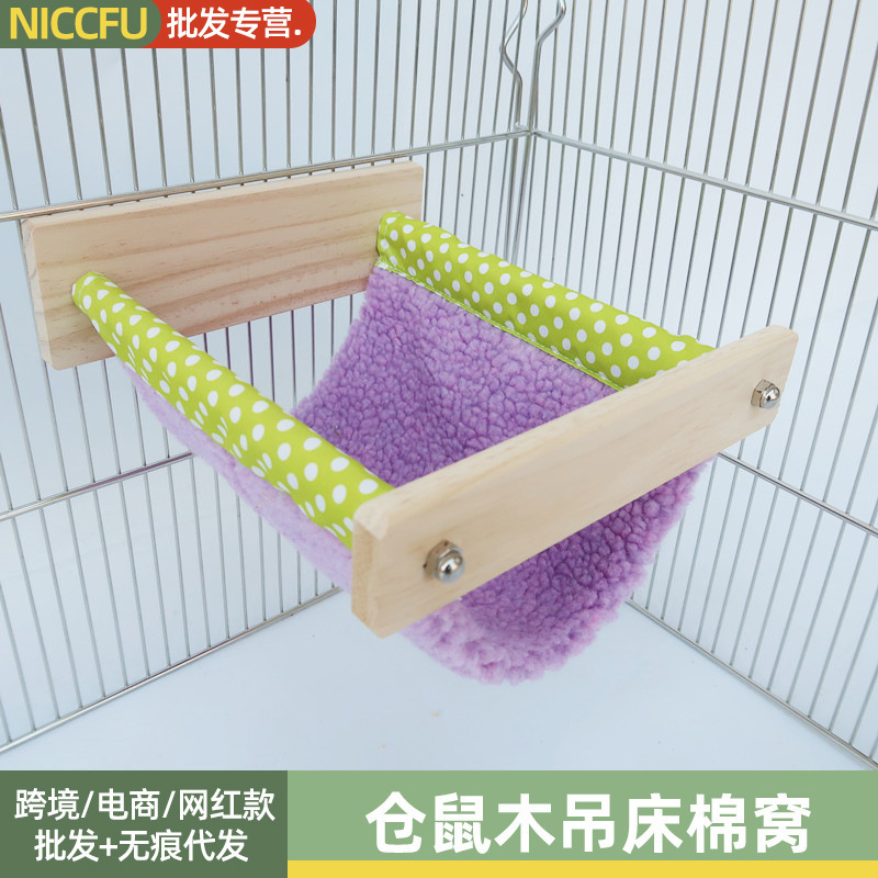 Tempat tidur ayunan kayu Hamster sofa Totoro tempat tidur gantung tempat tidur gantung pengocok kayu babi Belanda kandang katun hangat musim dingin