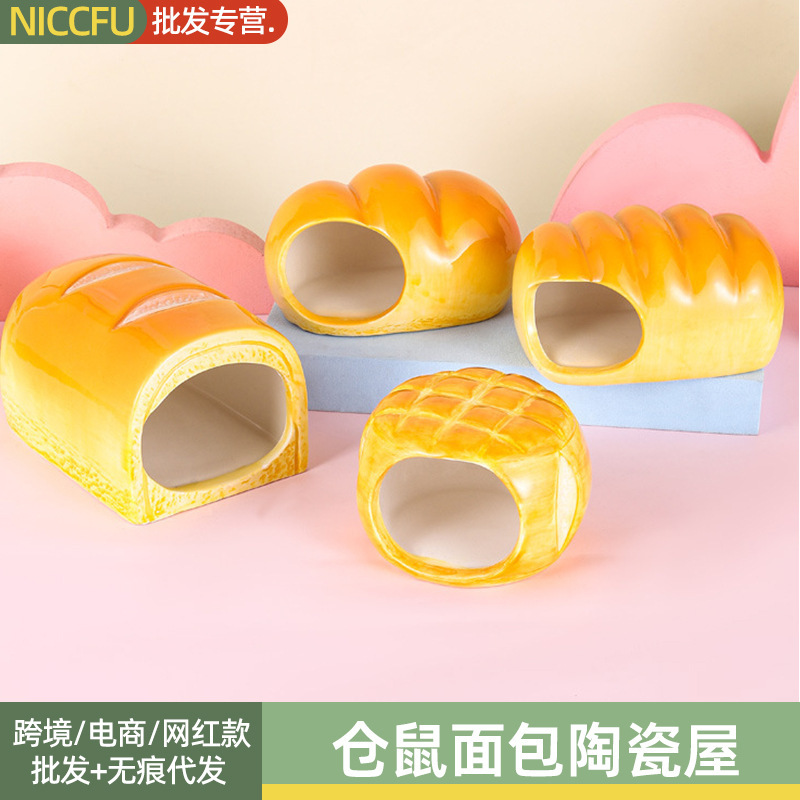 Rumah Keramik roti Hamster mouse cabang bunga landak pendingin musim panas dingin rumah es empat musim sarang hamburger roti bakar universal