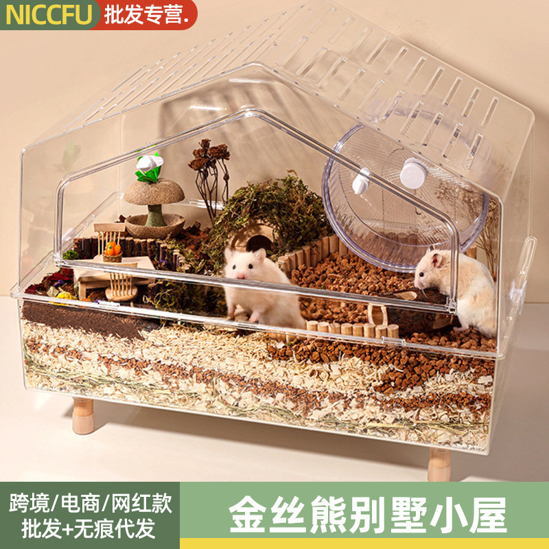 Kandang Hamster otak 47 dasar transparan kotak makan akrilik Beruang Emas ukuran besar mewah villa musim panas bernapas