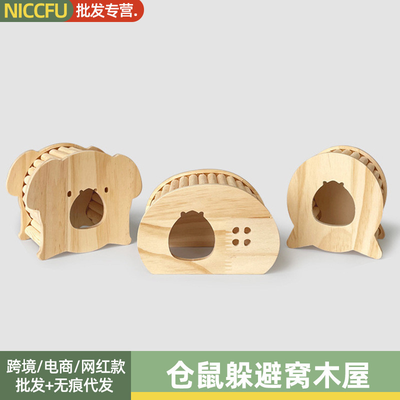 Sarang hamster kayu tupai tandem Totoro landak beruang emas sarang bersembunyi rumah kayu dengan tangga dekorasi lanskap