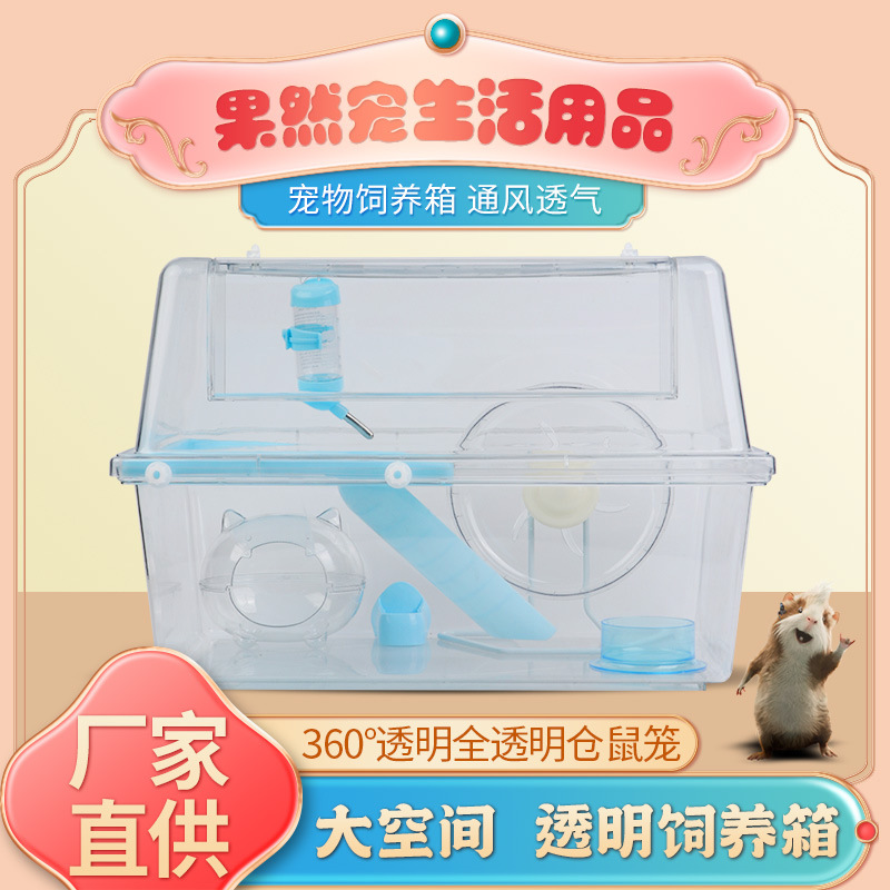 Hamster 60 kandang dasar Beruang Emas transparan tinggi sarang tikus cabang bunga lapisan ganda villa ukuran besar 47 perlengkapan setelan