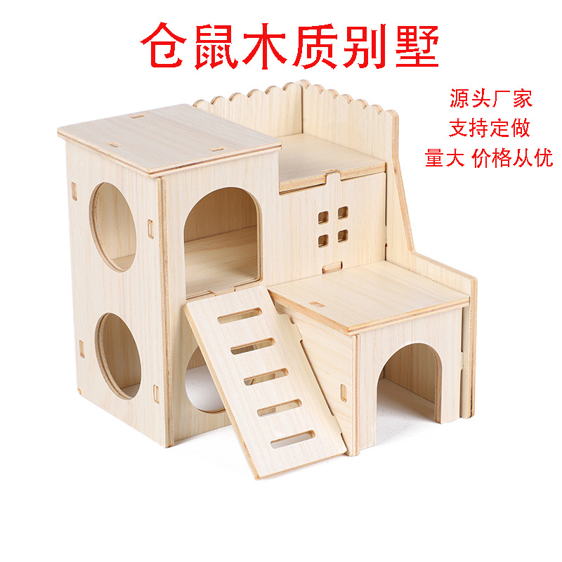 Grosir sarang kecil kayu padat rumah kecil sarang tidur beruang emas lanskap lintas batas melompat platform Villa Hamster mainan perlengkapan