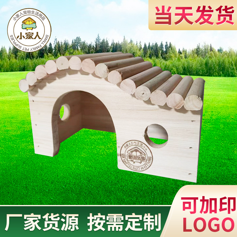 Rumah kayu hewan peliharaan gelombang baru sarang tupai hamster Totoro escape house empat musim Villa rumah kayu hewan peliharaan kecil grosir