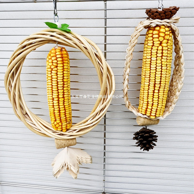 Mainan Burung Parrot Jagung Kering Alami Menggigit Gosok Gigi Kandang Burung Rotan Jerami Panjat Alat Bermain Tempat