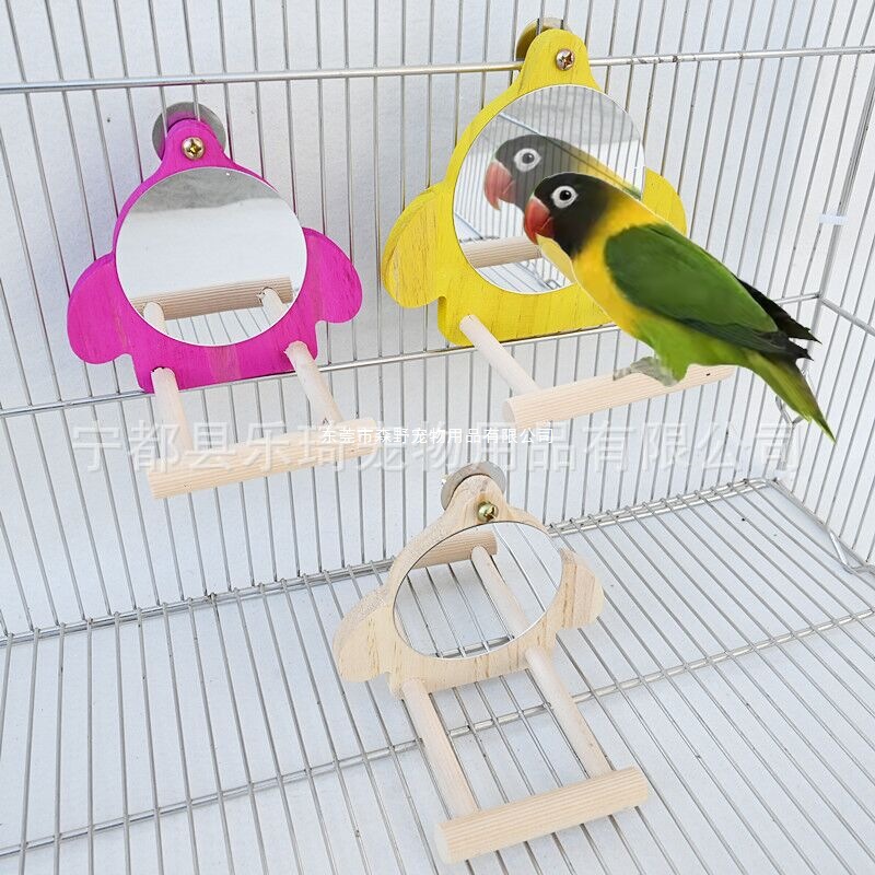 Mainan cermin burung beo rak berdiri sangkar burung untuk menghilangkan kebosanan