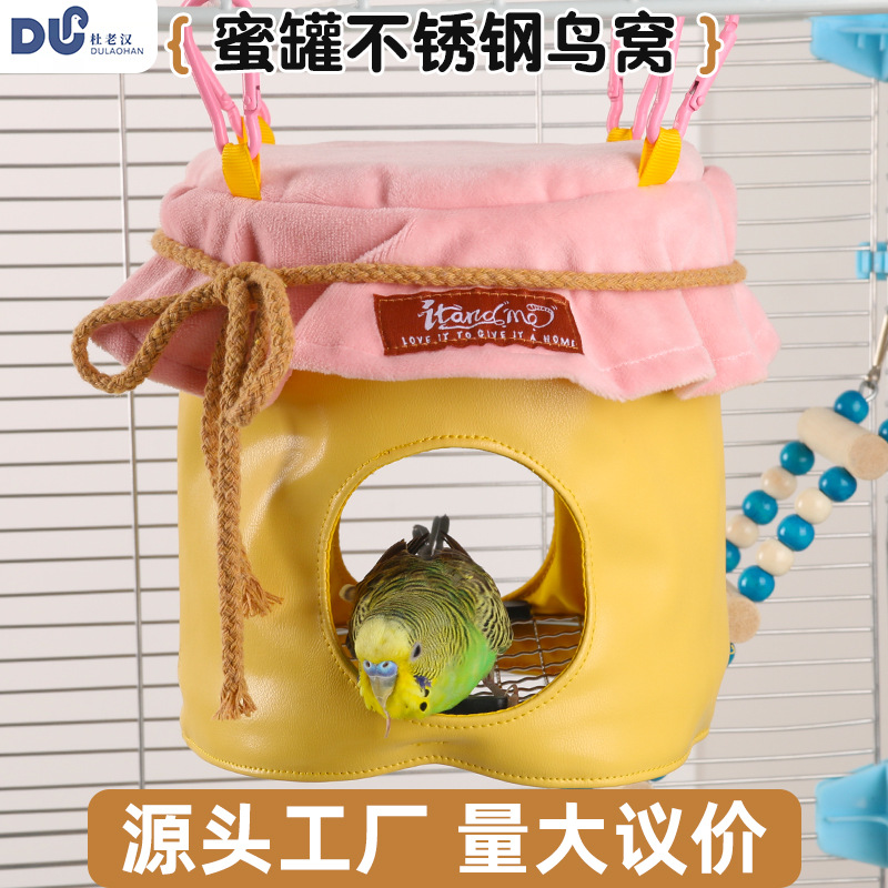 Sarang Burung Parrot Stainless Steel Bernapas Musim Panas Dapat Dilepas Jaring Bawah Peony Bulu Harimau Gantung Sarang Burung Du Laohan