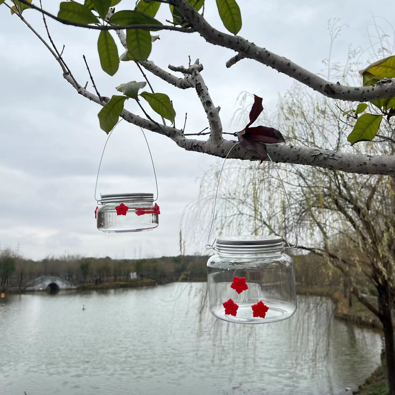 Hummingbird pengumpan empat bunga burung pengumpan hewan peliharaan stoples Mason burung pengumpan burung