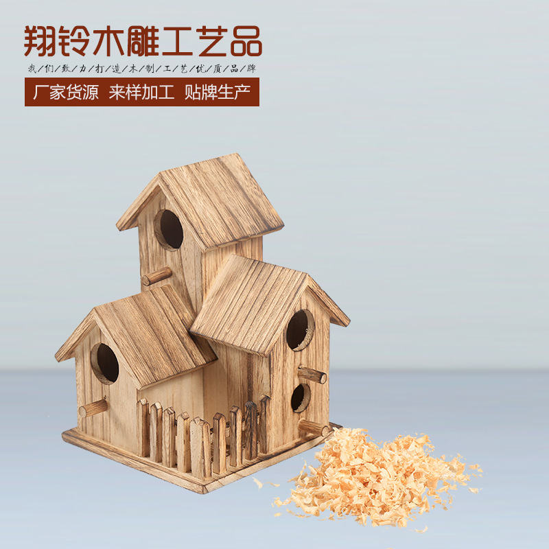 Ornamen ukiran kayu luar ruangan, sarang burung kayu padat kayu kerajinan rumah burung kayu luar ruangan gaya Eropa