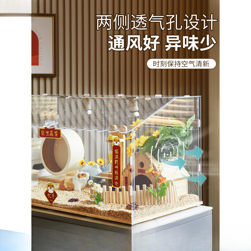 Kandang Hamster Akrei Kotak Pembiakan Transparan Penuh Beruang Sutra Emas Set Lengkap Hewan Peliharaan Villa