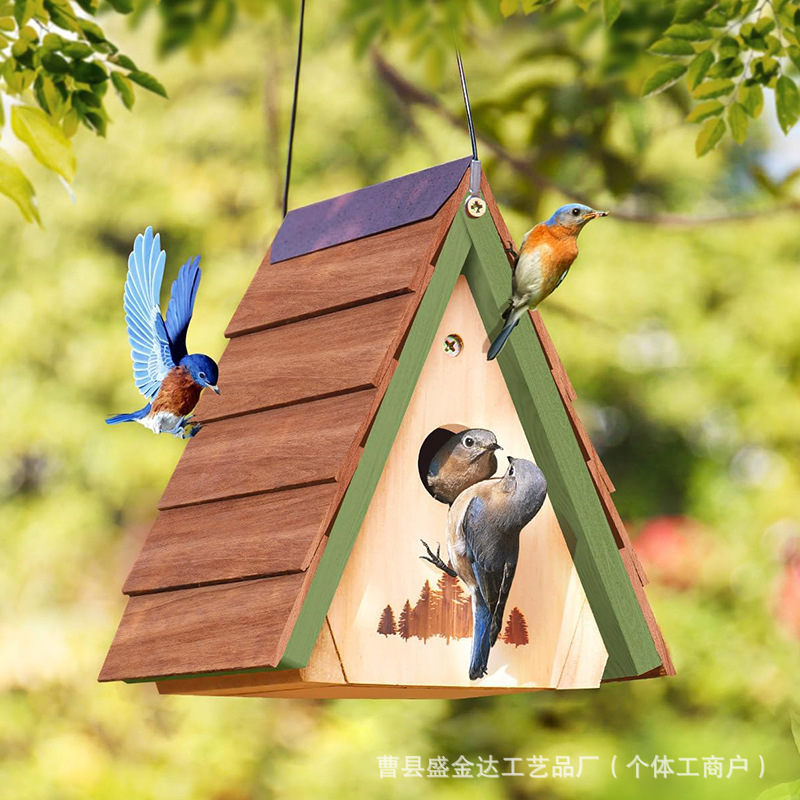Rumah Burung Kayu Rumah Burung Luar Ruangan Dekorasi Teras Sarang Burung Kayu Liontin Halaman Sarang Burung Kayu Padat Rumah Burung Luar Ruangan