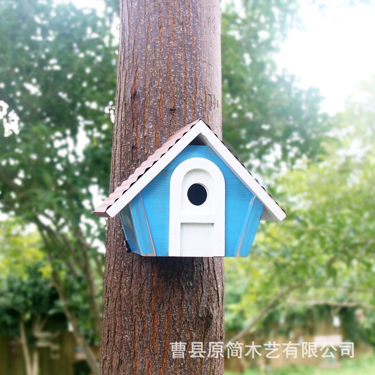 Sarang Burung kayu luar ruangan menggantung rumah burung burung kolibri biru rumah pembiakan sarang burung liontin taman kayu solid pengumpan burung