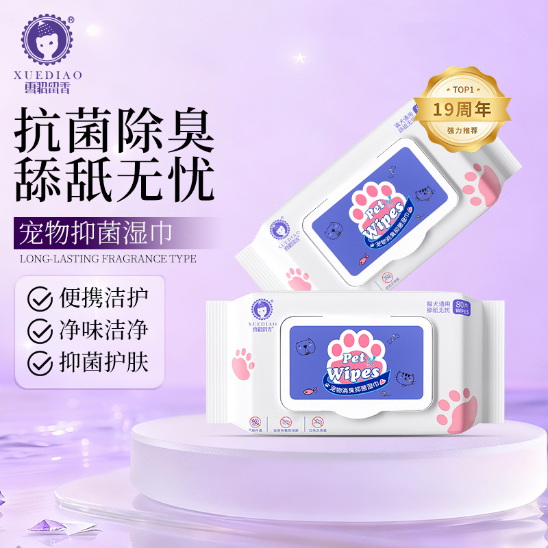 Cerpelai salju tisu hewan peliharaan 80 pompa menghapus noda air perlengkapan sehari-hari hewan antibakteri desinfeksi deodoran tisu pembersih