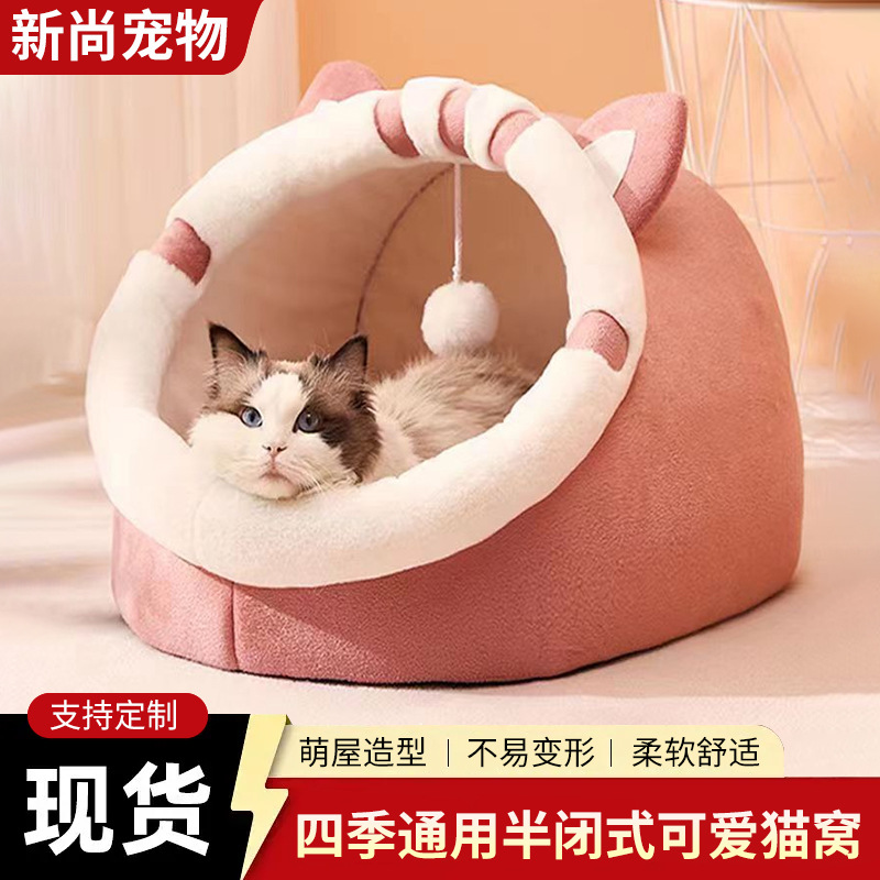 Tempat Tidur Kucing Semi Tertutup Tetap Hangat Musim Gugur Musim Dingin Tempat Tidur Kucing Empat Musim Universal Penutup Kerang Musim Dingin Produk Hewan Peliharaan Grosir