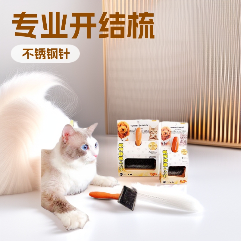 TOMMY & COCO sisir jarum pegangan kayu hewan peliharaan sisir simpul kucing dan anjing profesional jarum baja tahan karat napping titik tanpa pelindung