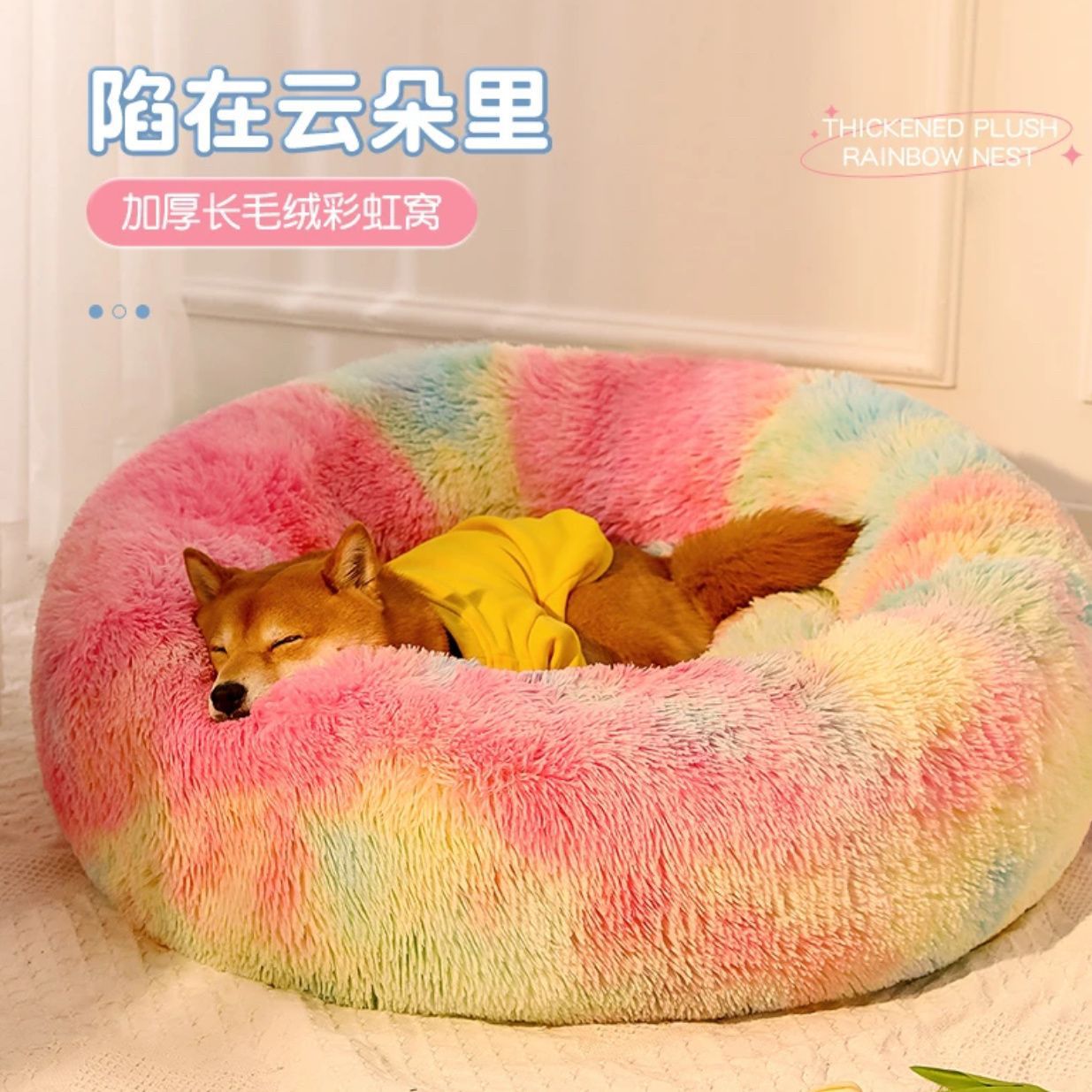 Perlengkapan Hewan Peliharaan Pelangi Kandang Kucing Pelangi Bantal Anjing Rambut Panjang Bentuk Bulat Tempat Tidur Kucing Musim Gugur Musim Dingin Tidur Dalam Sarang Empat Musim
