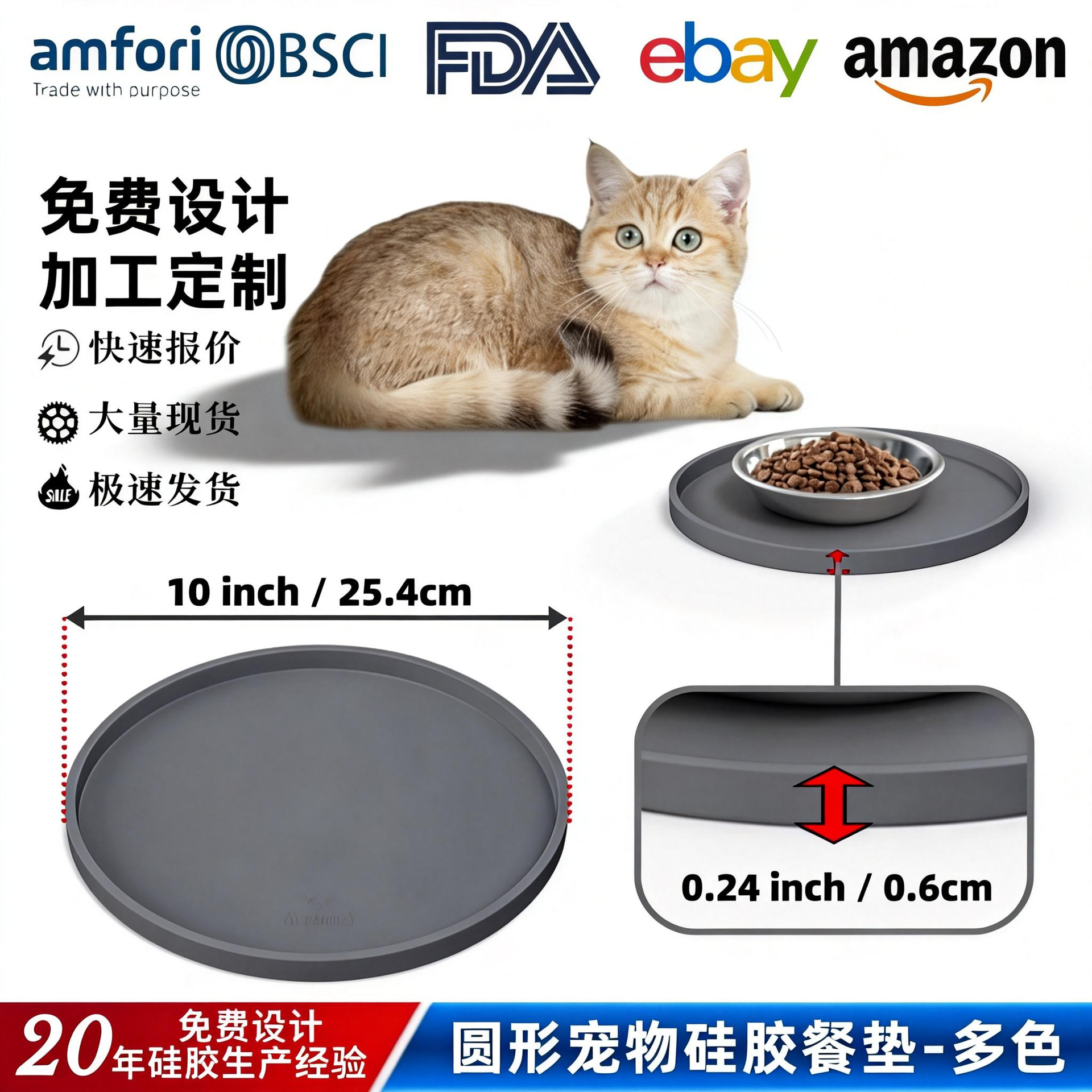 Alas Makan Bentuk Bulat Hewan Peliharaan Bantalan Mangkuk Makan Silikon Bantalan Makanan Kucing dan Anjing Bertingkat Tinggi Lintas Batas Bantalan Piring Makan Anak Anak Tahan Air