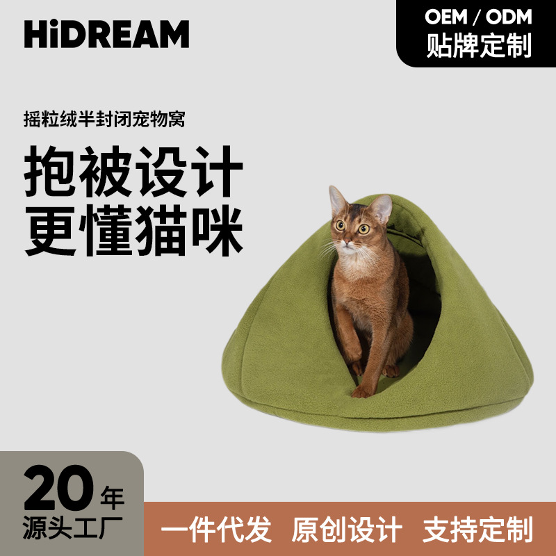 HiDREAM tempat tidur kucing untuk bayi, kandang kucing kecil semi-tertutup hangat untuk musim dingin