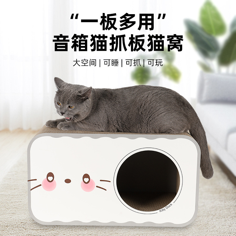 Sarang kucing kertas bergelombang tahan aus, mainan kucing papan gores hangat perlengkapan hewan peliharaan kucing rumah audio tidur Gerinda cakar kucing grosir