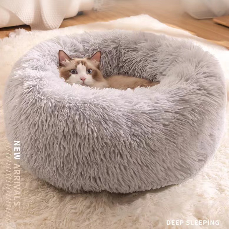 Sarang kucing hewan peliharaan, perlengkapan hewan peliharaan sarang anjing musim dingin hangat Teddy mewah bulat dapat dilepas dan dicuci
