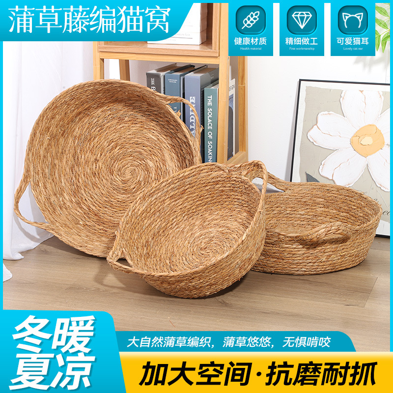 Anyaman rotan empat musim sarang kucing papan gores sarang kucing musim panas empat musim tempat tidur kucing universal tenunan tangan kandang kucing perlengkapan hewan peliharaan