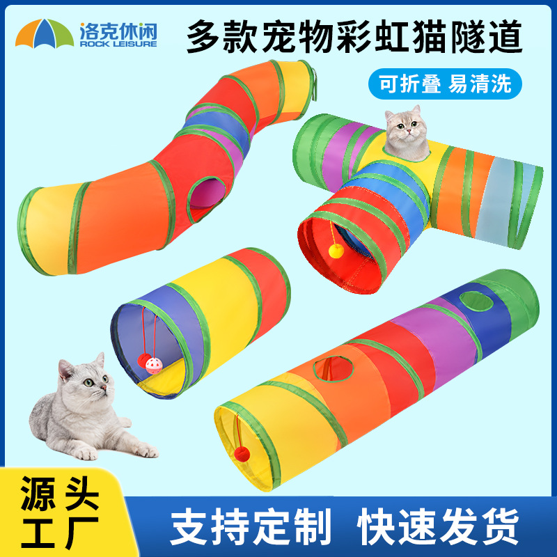 Pabrik Produk Hewan Peliharaan Tempat Kucing Terowongan Kucing Langsung Melalui Saluran Perayapan Tiga Saluran Lipat Kandang Kucing