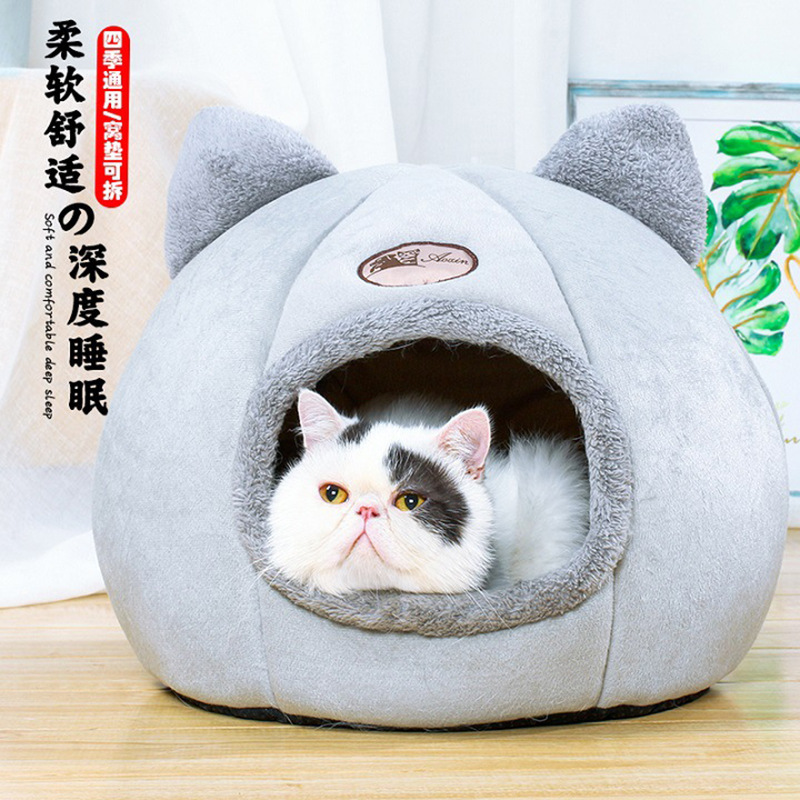 Grosir Pabrik kandang kucing empat musim universal semi-tertutup kandang bulat tempat tidur hewan peliharaan kandang kucing alas persediaan hewan peliharaan