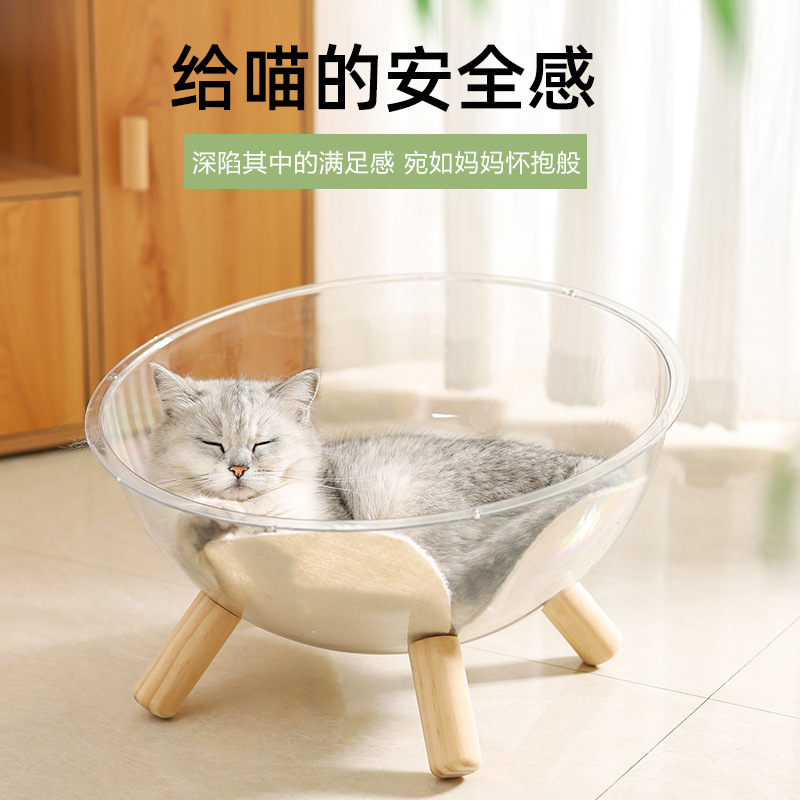 Kapsul Luar Angkasa Kucing Besar Tempat Tidur Kucing Dasar Kayu Solid Sederhana Universal Empat Musim Musim Panas
