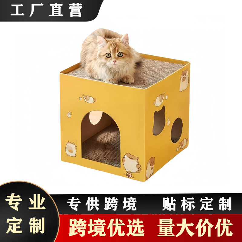 Grosir Pabrik kandang kucing persegi bawaan kertas bergelombang inti pengganti Gerinda cakar kucing papan gores rumah kucing dapat dilipat