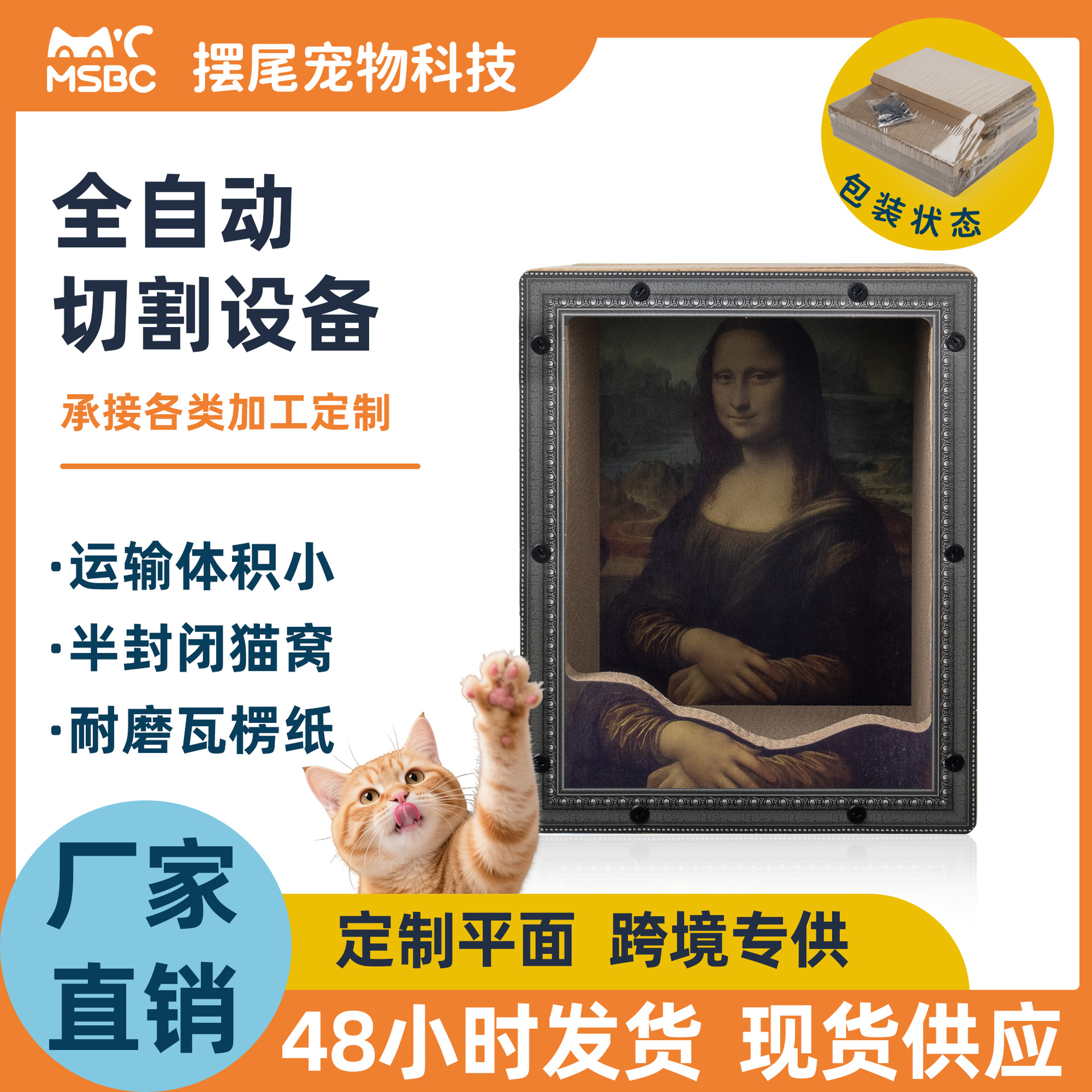 Mona Lisa Peluk Kucing Dua Lapisan Papan Genggam Kucing Kucing Satu Kesatuan Rumah Penghindaran Kucing Universal Empat Musim Lukisan Terkenal Dunia Rumah Kucing