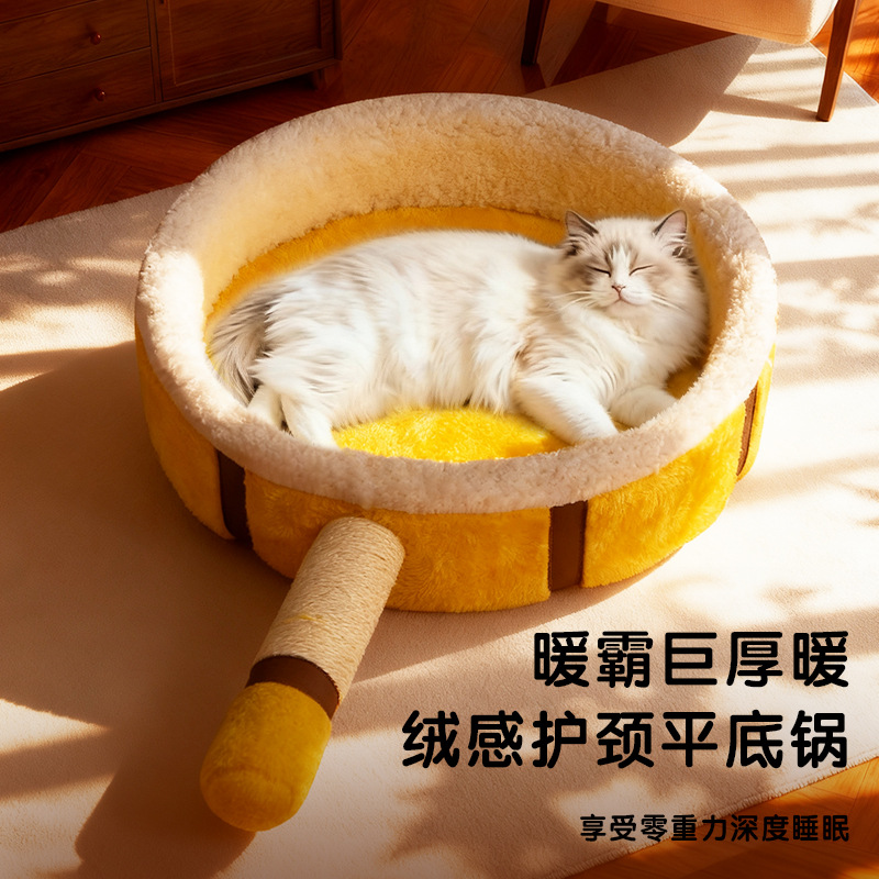 平底锅猫窝可爱猫抓板猫窝加厚冬季保暖垫子宠物睡垫猫窝一件代发