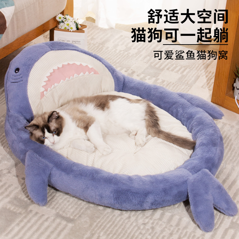 2024 baru musim gugur dan musim dingin sofa sarang hewan peliharaan non-slip lucu putih besar bentuk hiu kucing sarang anjing tikar tidur tempat tidur hewan peliharaan