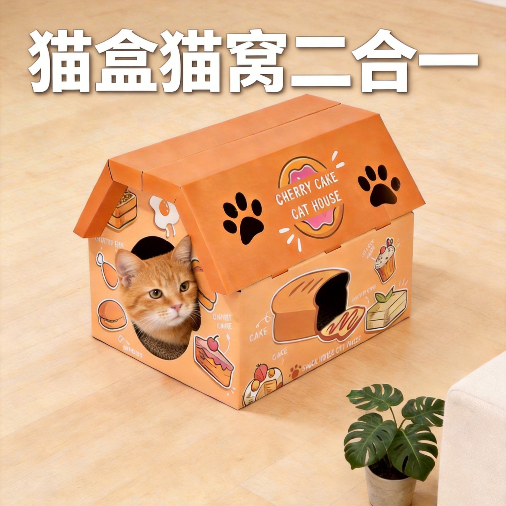 Model Baru Rumah Kucing Empat Musim Universal Karton Rumah Rumah Kucing Papan Genggam Kucing Satu Rumah Kucing Kertas Rumah Kucing Grosir